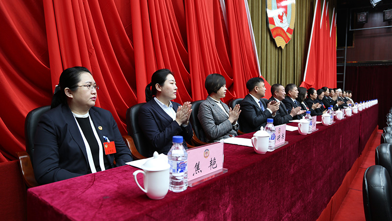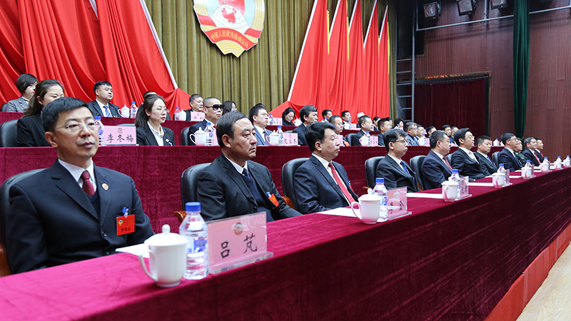 政协长春市九台区第十五届委员会第四次会议闭幕会主席台前就座的领导和委员