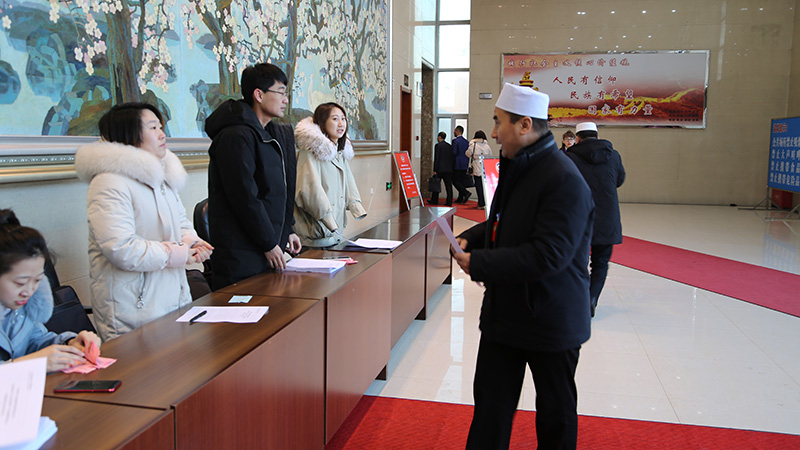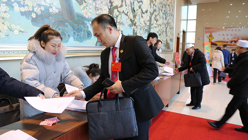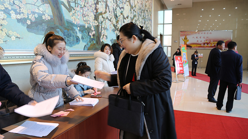 参加政协长春市九台区第十五届委员会第四次会议闭幕会的委员签到