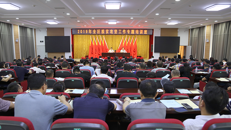 6月13日,2019年全区脱贫攻坚工作专题培训班在区委党校报告厅正式开班,区委常委、组织部部长赵国俊参加开班仪式。