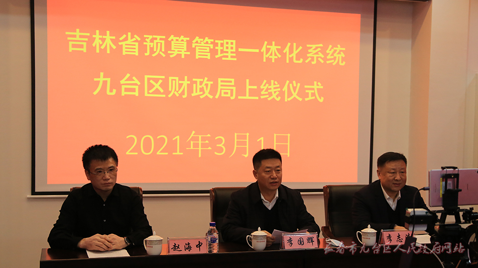3月1日,吉林省预算管理一体化系统九台区财政局上线仪式在区财政局五楼会议室召开。吉林省财政厅副厅长王立东,吉林省财政厅各相关负责同志以视频会议形式参加,九台区委常委、常务副区长李国辉参加上线仪式。区财政局局长李志清主持仪式。