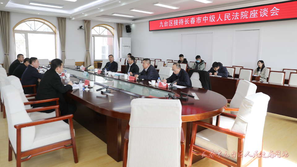 3月24日,长春市委常委、九台区委书记黄宪昱主持召开与长春市中级人民法院座谈会,畅叙友谊、共谋发展。长春市中级人民法院院长任贵利,区人大常委会主任王树民,区长王涛,区委常委、政法委书记孙文斌,区人民法院院长邵杰参加座谈。