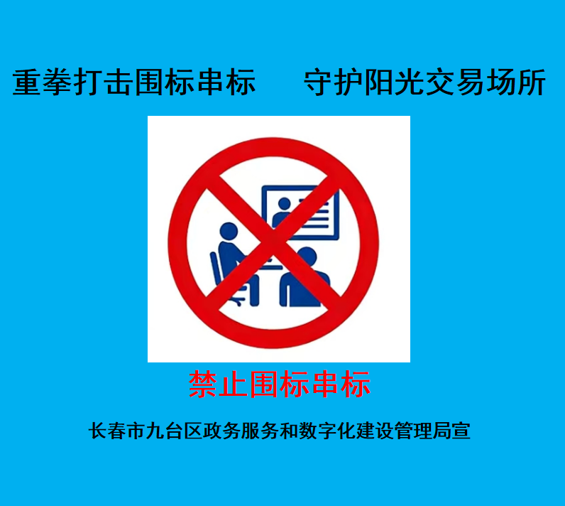 九台区公共资源交易场所秉持着阳光交易,人人有责的原则,恪守职业道德,诚信服务,以铁的决心、铁的手腕,坚决打击围标串标行为,为建设公平、公正、公开的市场环境贡献力量!